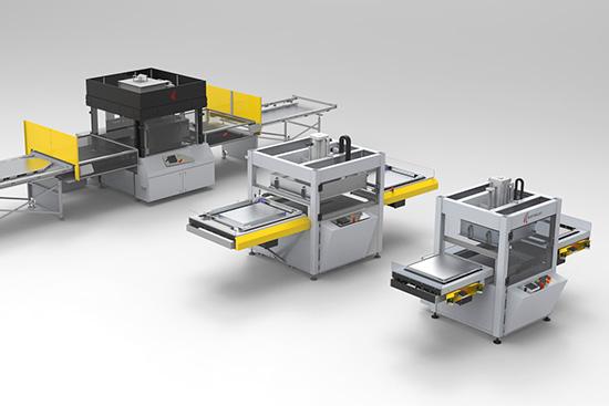 With power from 8-15 kW and 500cm2 electrode area, the Q range of welders can efficiently handle a very wide variety of jobs. The welded and four-actuator press structure ensures a perfect distribution of pressure over the entire welding surface and supports high pressure on different formats up to 900 x 1500mm